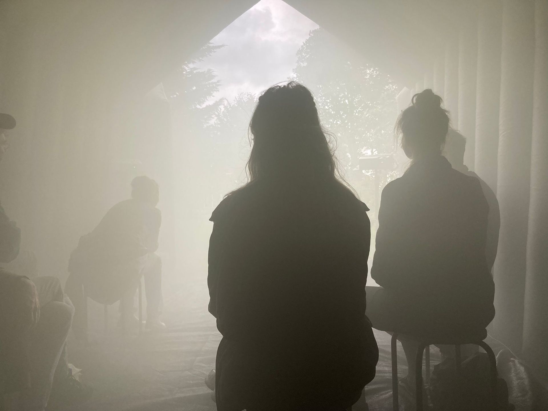 Vooronderzoek van Waar de tijd is op FestiValdrAa in Drenthe. Club NEL gaat in gesprek met bezoekers. Het werk van Joke Hermsen dient als vertrekpunt.